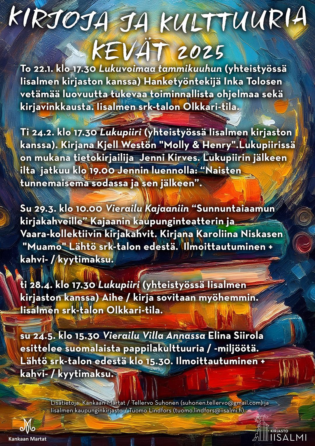 Kevään 2026 Kirjoja ja kultturia -kerhon tapahtumat