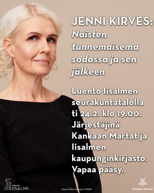Historioitsija, kirjailija Jenni Kirves vetää kk-kerhon. Juttelemme Jennin toiveesta Kjell Westön kirjasta "Molly ja Henry". Jatkuu yleisötilaisuutena.